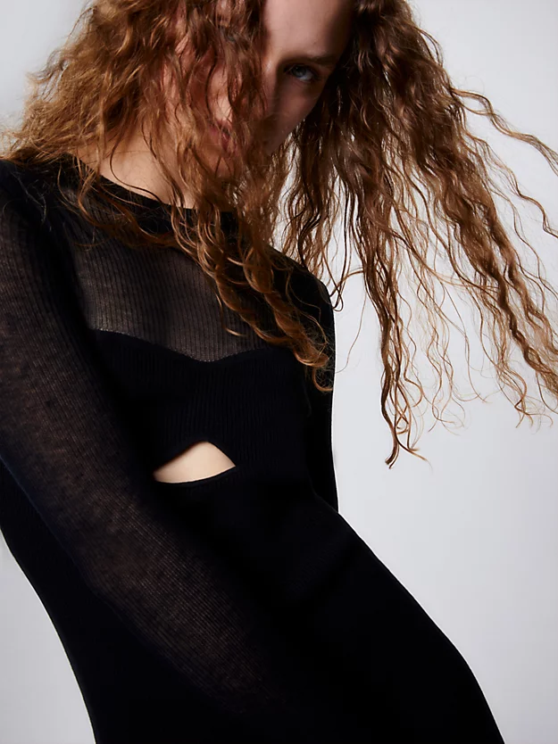 • sheer knit shoulder and sleeves