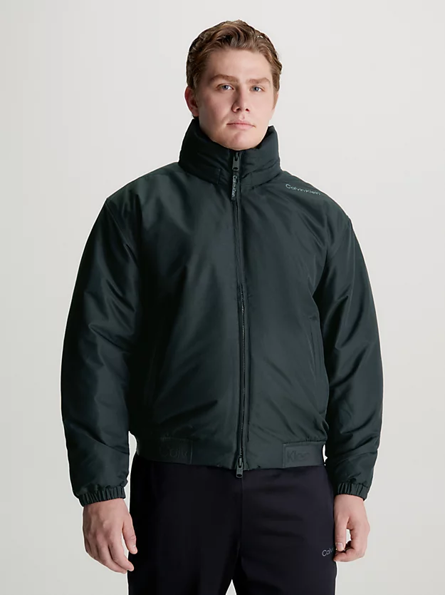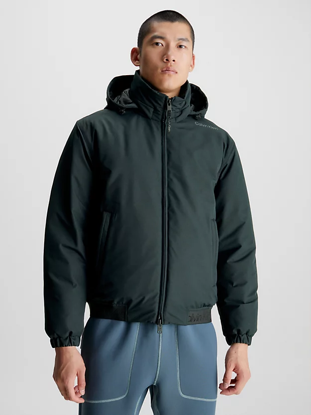 • Calvin Klein heat-sealed logo at the shoulder